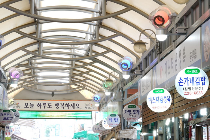 동대문구는 이를 개선하기 위해 증발냉방장치를 설치해 시장상인과 고객들의 편의를 높이고 조명 효과로 심미성까지 더했다.