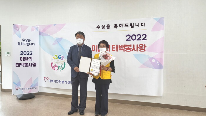 한편 태백시자원봉사센터는 매월 활동 실적이 가장 우수한 봉사자를 선정하여 자원봉사자의 활동에 대한 다양한 인정과 가치 및 문화확산을 위해 태백 봉사왕으로 선정하고 월 1회 시상하고 있다.