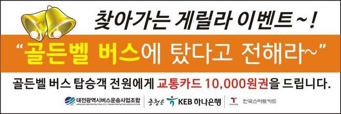 이벤트는 교통카드 사업자 KEB하나은행㈜와 ㈜한국스마트카드 주관으로 대전지역을 운행하는 시내버스 전 노선을 대상으로 실시한다.