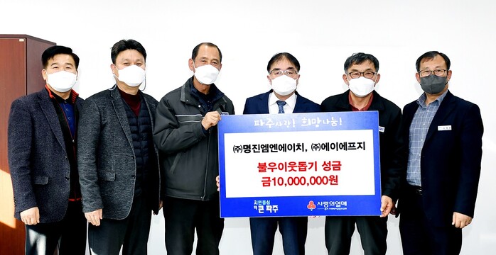 [로컬세계 = 이영원 기자]경기 파주시(시장 김경일)는 29일 관내 전문건설업체인 ㈜명진엠엔에이치(대표 한정열)에서 불우이웃돕기 성금 1,000만원을 기탁 받았다.