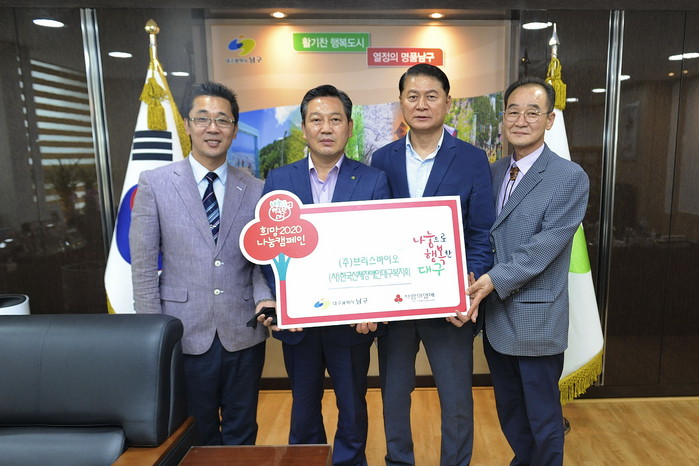 [로컬세계 박세환 기자]대구 남구청은 지난 9일 (사)한국신체장애인대구복지회(회장 정판규)와 ㈜브리스바이오(대표 이일호)에서 어려운 이웃을 위해 생수(500ml) 3600병을 전달했다고 13일 밝혔다. 이날 전달된 생수는 생활이 어려운 저소득 세대 등에 전달될 예정이다.