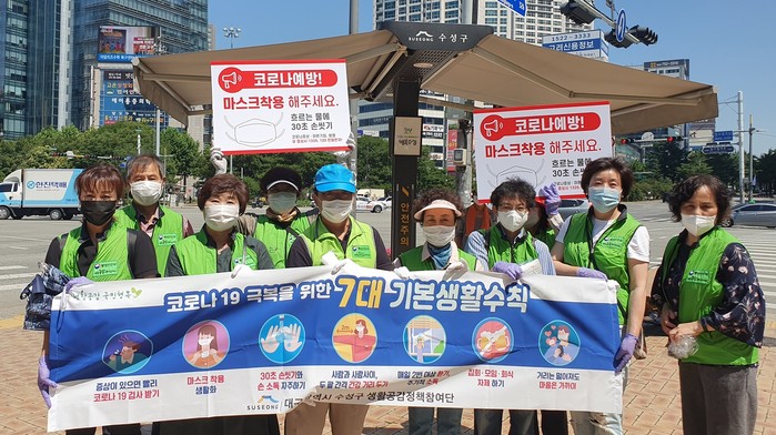 박애숙 제7기 수성구 생활공감정책참여단 회장은 “이번 캠페인을 통해 7대 기본수칙이 널리 홍보돼 하루빨리 코로나19가 종식되고 예전의 일상으로 돌아가기를 바란다”고 말했다.