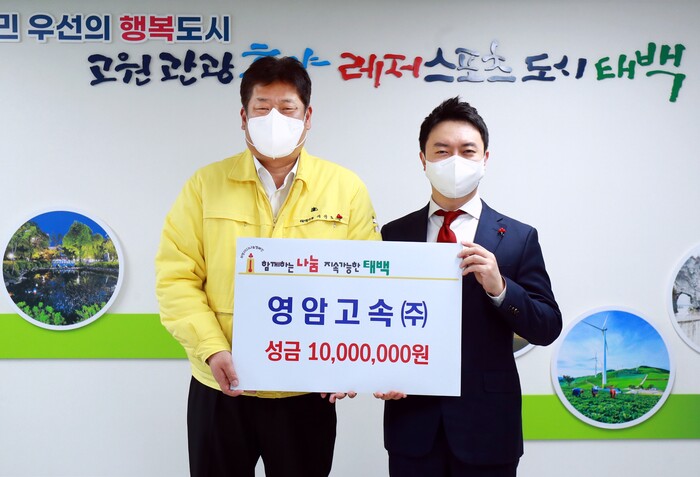 박학도 영암고속 회장은 “생활이 어려운 복지사각지대 가정이 연말을 맞아 따뜻한 겨울 보내는데 조금이라도 도움이 되었으면 좋겠다”는 바람을 전했다.성금은 박학도 회장을 대신해 박계형 전무이사가 태백시청을 방문해 기탁했다.