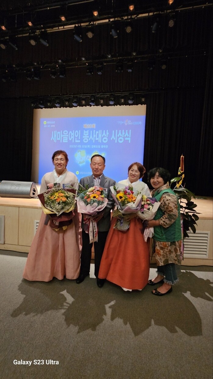 이날 시상식에서 봉양면 새마을부녀회 임영자 회장은 근면봉사상을 수상했으며, 점곡면 새마을부녀회 총무 김수경씨가 모범부녀회장상을, 다인면 김옥분 새마을부녀회장의 배우자 김동인씨가 외조상을 수상하는 쾌거를 거두어 부녀회원들의 자긍심을 높였다.