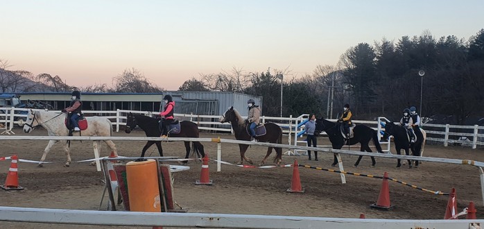 | ▲백암면의 한 승마장에서 학생승마체험 수업이 진행되고 있는 모습. 용인시 제공 |