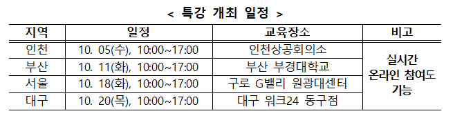 5일부터 인천‧부산‧서울‧대구서 순차 개최, 실시간 온라인 참여도 가능