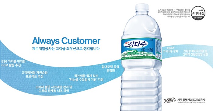 한편, 제주개발공사는 지난해 ‘소비자 중심 경영 선포식’을 개최하고 제주삼다수 품질관리와 더불어 직급별 CS 관리, VOC 통합 관리 시스템 구축 등 전사적인 고객중심경영을 추진한 바 있다. 이러한 활동을 바탕으로 제주개발공사는 지난해 12월 광역도시개발공사 최초로 공정거래위원회가 인증하는 국가인증제도인 소비자중심경영(CCM) 인증을 받았다.