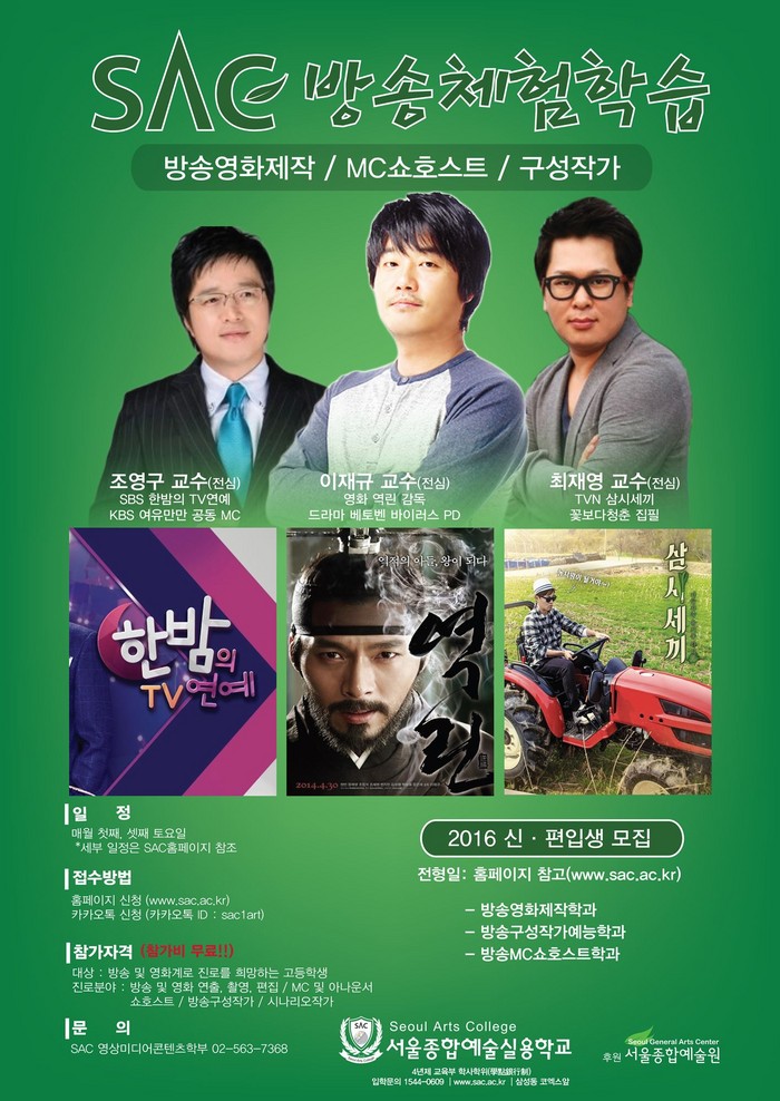 내년 1월까지 진행될 이번 방송체험학습 특강은 서예종 홈페이지(www.sac.ac.kr)를 통해 신청할 수 있으며 참가비는 무료다.