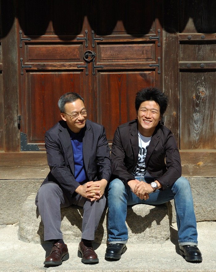 ▲사진 오른쪽부터 가수 안치환, 시인 정호승. |
