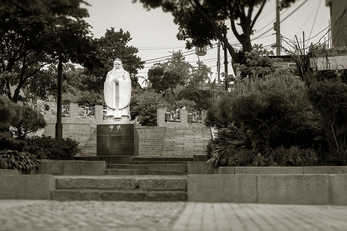북성동 차이나타운의 청일 조계지 계단을 오르다 보면 언덕배기에 인천 앞바다를 바라보고 있는 공자상을 만날 수 있다. 받침대를 포함해 높이 4.6m, 무게 1.5t 규모의 화강석으로 이뤄진 공자상은 2002년에 세워졌다. 이 공자상은 중국 칭다오시 시남구가 제작해 인천 중구에 기증했다.