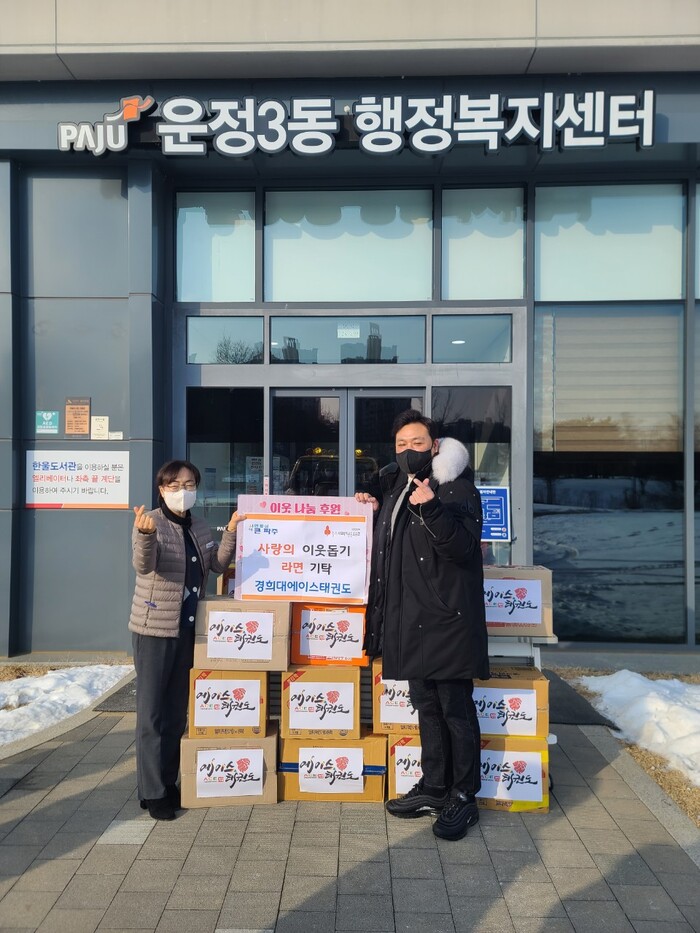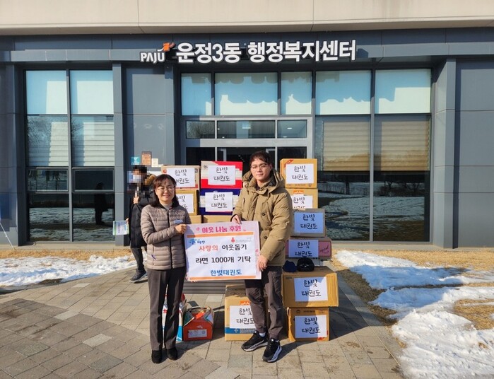 ▲ 경희대에이스태권도 관장이 라면 기탁. 파주시 제공 |