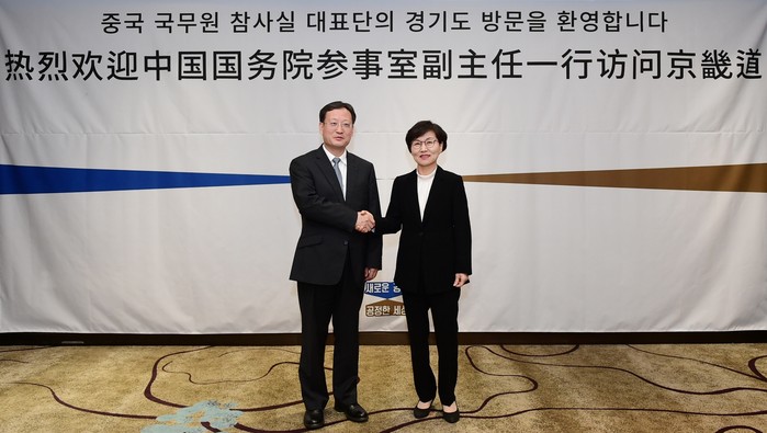 이화순 경기도 행정2부지사는 21일 저녁 수원 노보텔에서 중국 국무원 참사실 장옌통 부주임을 만나 경기도와 중국 간 교류확대와 협력 강화 방안에 대해 논의했다.