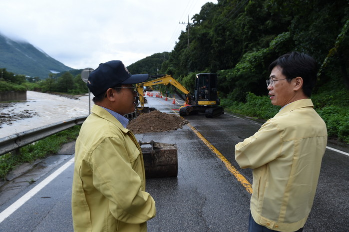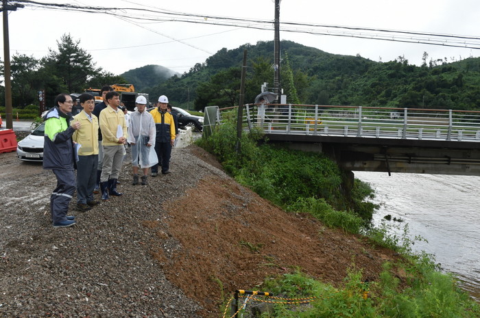 김 부지사는 현장을 둘러본 후 “내일까지 호우예보가 있으니 끝까지 방심하지 말고 단 1명의 인명피해도 발생하지 않도록 해야 한다”며 담당 공무원에 주의를 당부했다.