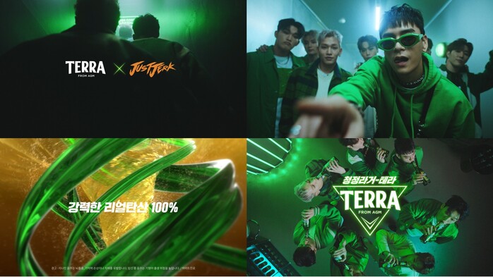 이번 광고는 국내 정상급 댄스 크루 간의 긴장감 높은 경연으로 시청자에게 즐거움을 전달했던 ‘스맨파’의 우승팀 ‘저스트절크’와 함께했다. 테라의 아이덴티티인 ‘녹색병’과 ‘토네이도’를 강조하고 저스트절크의 카리스마 넘치는 분위기를 표현하는데 집중했다. 또, 테라 광고의 상징인 토네이도를 보다 화려하게 시각화해 구현했다.