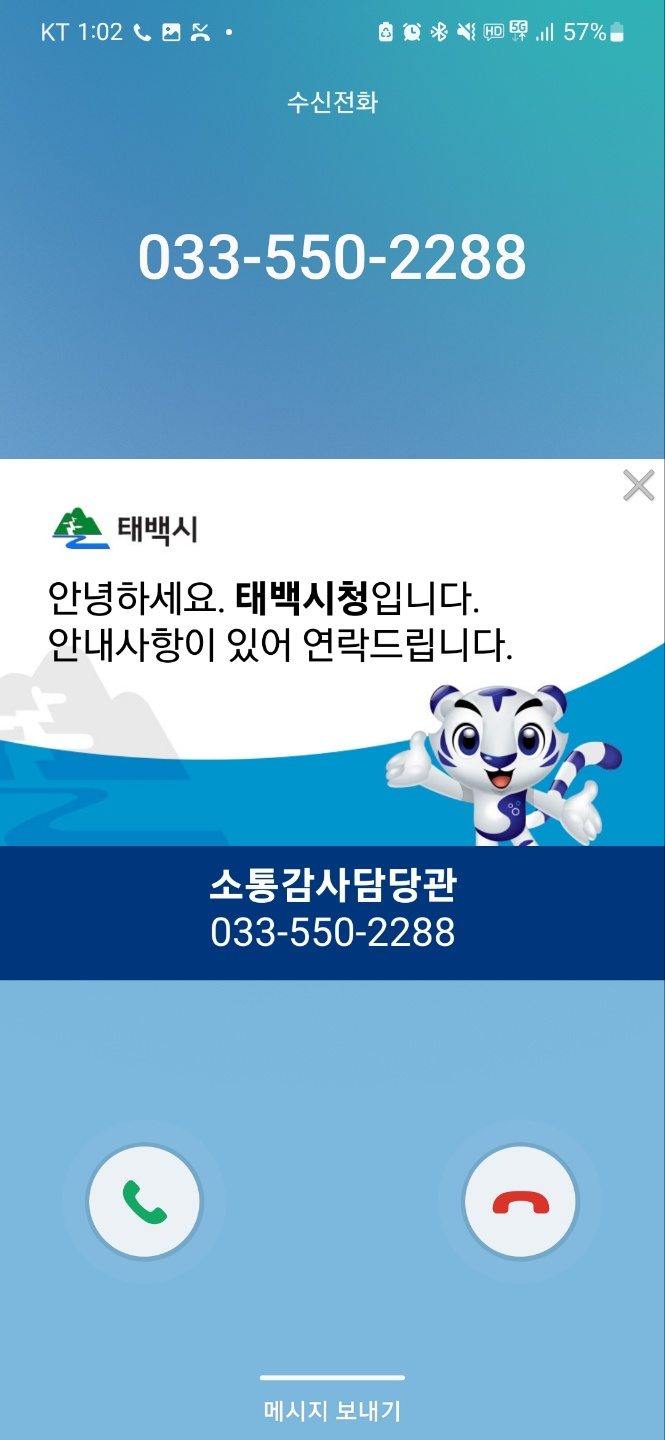 또한, 행정전화로 전화연결시 수신자 스마트폰 화면에 관련 부서에 대한 발신자 정보를 알려주는 ‘스마트 알림서비스’도 함께 실시해 행정전화를 스팸 전화로 오인해 발생할 수 있는 업무 지연을 예방할 수 있을 것으로 기대하고 있다.