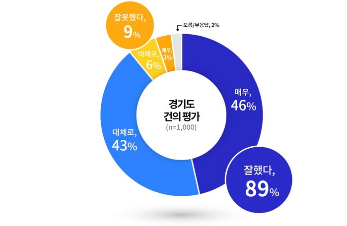 이번 조사는 도가 여론조사기관인 ㈜케이스탯리서치에 의뢰해 지난달 26일 18세 이상 도민 1000명을 대상으로 전화조사 방식으로 진행했다. 신뢰수준 95%, 표본오차 ±3.1%p다.
