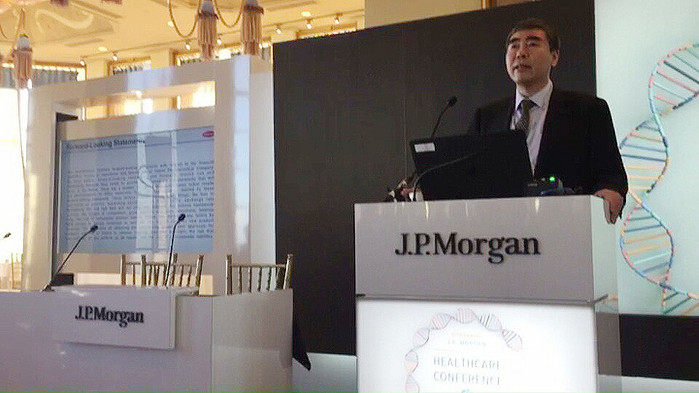 | ▲ 제35회 JP모건 헬스케어 컨퍼런스에 참석한 한미약품 이관순 사장이 2017년도 R&D 전략을 발표하고 있다.(사진제공/한미약품) |