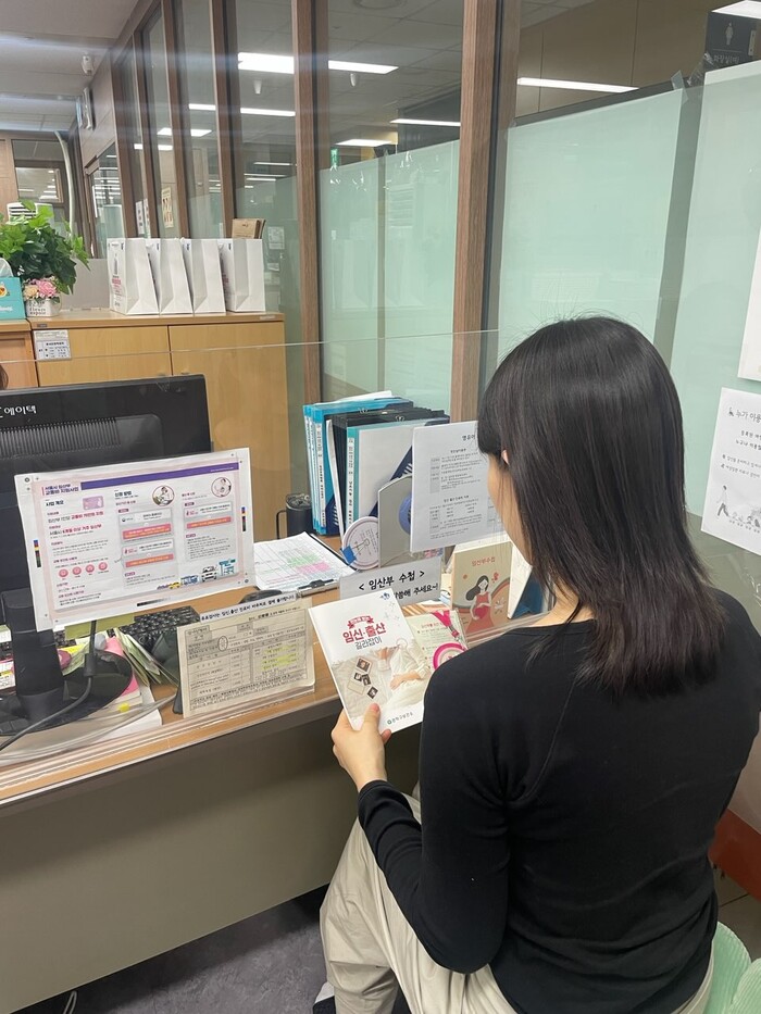 ▲ 관악구 보건소에서 임신출산 관련 지원사업 안내를 받고 있는 임산부. |