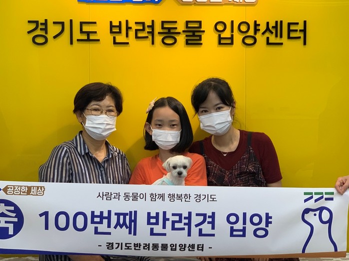 [로컬세계 이혁중 기자]유기동물 입양문화 확산을 위해 지난해 10월 수원에 문을 연 ‘경기도 반려동물 입양센터’에서 100번째 입양견이 탄생했다.
