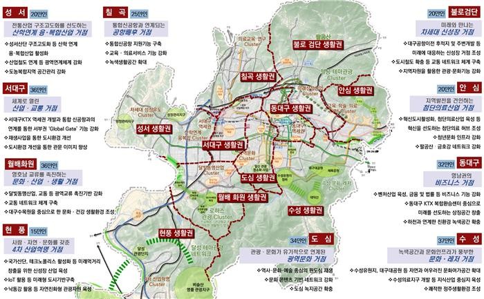 도시공간구조는 1도심, 4부도심(동대구, 칠곡, 성서, 현풍), 5성장유도거점(서대구, 월배화원, 수성, 안심, 불로검단)으로 개편했다.
