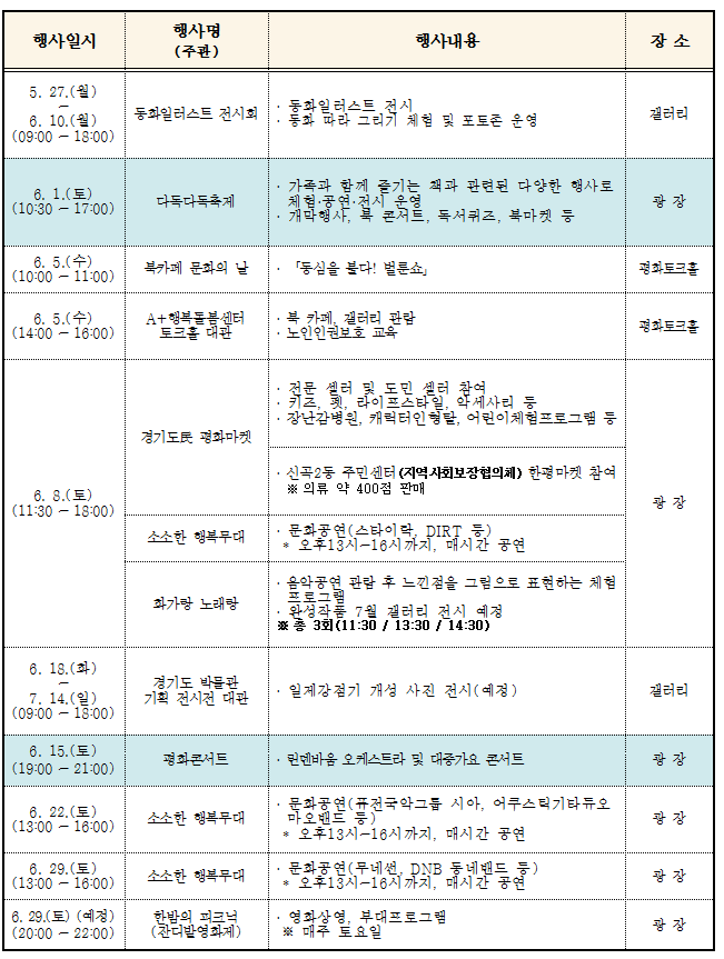 ◆ 경기평화광장 및 북카페 행사 일정(6월)