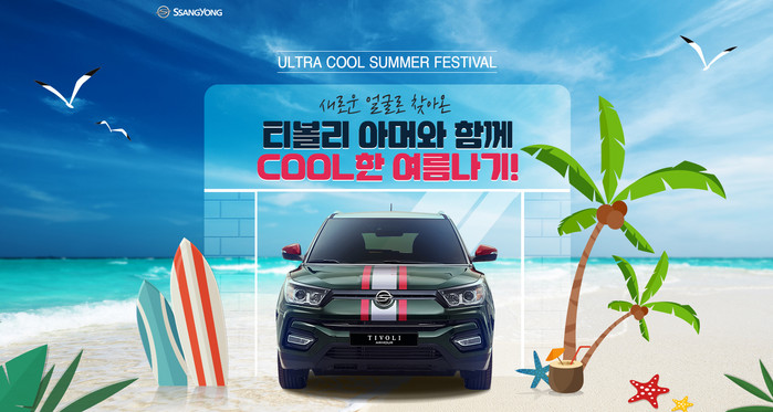 ‘티볼리 아머와 Cool한 여름나기(이하 쿨한 여름나기)’는 더욱 강인하고 단단한 스타일로 거듭난 티볼리 아머 출시를 기념해 실시한다. 이번 이벤트는 온·오프라인을 통해 진행되며, 최신 스마트폰과 로봇청소기 등 다양하고 푸짐한 선물을 준비했다. 아울러 구매상담이나 계약을 진행한 모든 고객들에게 여행용 세면도구 세트를 증정한다.