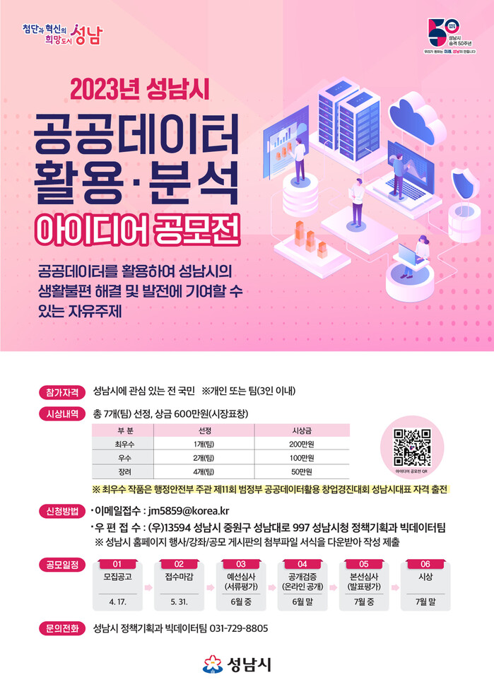 공모 주제는 공공데이터를 활용해 성남시의 발전이나 생활 불편 해결에 이바지할 수 있는 내용으로 한다.