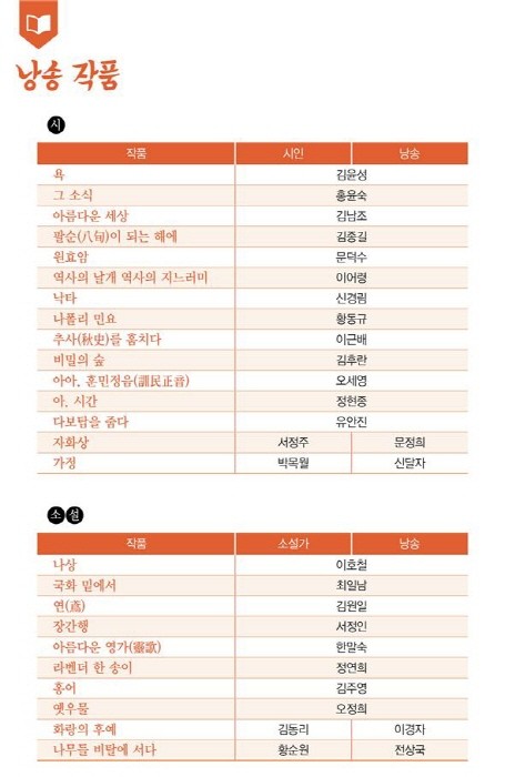 ▲ 낭송작품 목록 <자료 제공=문화체육관광부> |