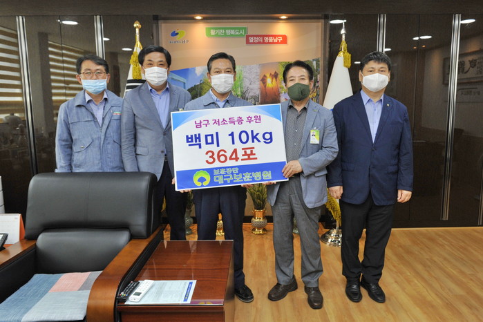 [로컬세계 박세환 기자]대구 남구청(구청장 조재구)은 지난 25일, 보훈공단 대구보훈병원(병원장 조영래)에서 코로나19 장기화에 따른 지역경제 활성화 및 저소득 가정 지원을 위해 백미(10kg) 364포를 전달했다고 밝혔다. 이날 전달된 백미는 사회복지시설 및 생활이 어려운 저소득 세대 등에 전달될 예정이다.