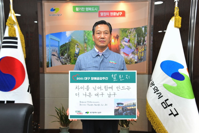 [로컬세계 박세환 기자]대구 남구청은 지난 27일 조재구 구청장이 ’2021 대구 장애공감주간‘ 챌린지에 참여했다고 31일 밝혔다.