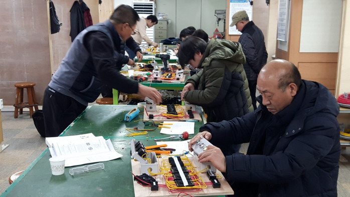 | ▲교육생들이 성남시 산성동 한국폴리텍 캠퍼스에서 승강기 설치·유지보수 과정을 수강하고 있는 모습.(성남시 제공) |