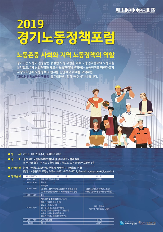 이밖에도 경기도노동권익센터 설치, 생활임금 제도 시행 등 현재 경기도가 시행 중인 노동정책 및 사업들에 대해 소개하는 시간도 갖는다.