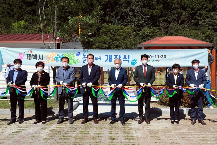 강원 태백시는 지난 24일 소도동 24-2번지 일원(태백체험공원 인근)에 반려동물 놀이터를 조성해 개장식을 갖고 본격 운영에 들어갔다.(사진=태백시 제공)
