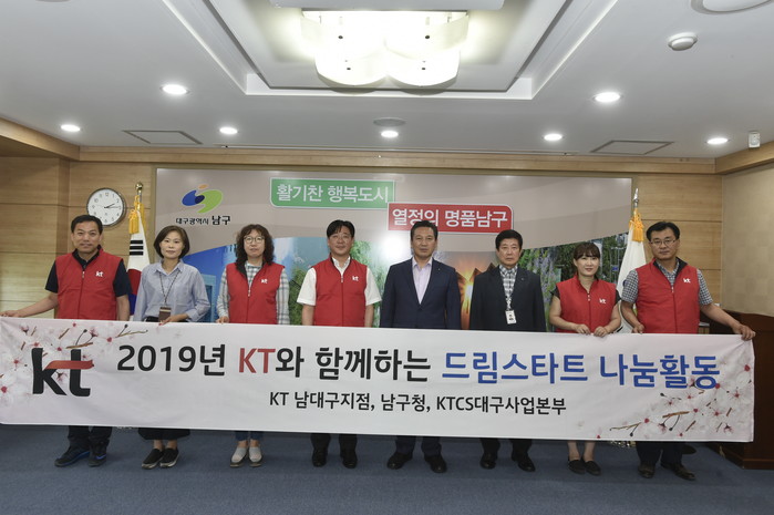 조재구 남구청장은 “지역사회 아동들을 위해 따뜻한 관심을 가지고 나눔활동을 펼치는 KT 남대구지점 사랑의 봉사단 분들게 깊은 감사 를 드린다”며 고마움을 전했다.