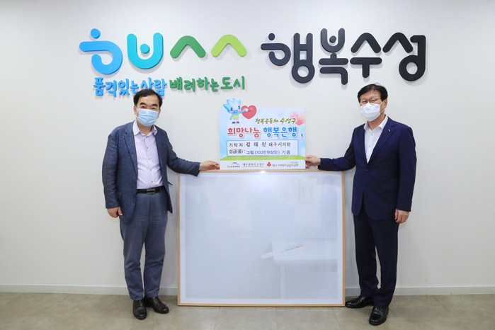 김태원 대구시의원은 지난 6월 예산결산특별위원 수당 270만원을 기탁해 수성구희망나눔위원회에서 전개하는 ‘희망+행복 릴레이’에 참여하는 등 지역사회의 어려운 이웃을 돕는데 지속적으로 동참하고 있다.