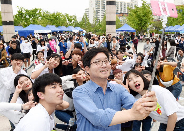 | ▲지난해 5월 열린 한 청소년행사에서 염태영 시장이 청소년들과 사진을 찍고 있다. |