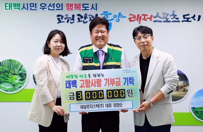 [로컬세계=박상진 기자]강원 태백시는 지난 19일 최양순 새길로지스틱 주식회사 대표가 시에 고향사랑기부금 300만원을 기탁했다고 20일 밝혔다.