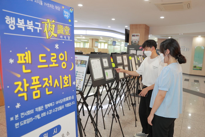 이번 전시회는 평일 낮 시간대 평생교육 강좌에 참여가 어려운 주민을 대상으로 개설된 ‘행복북구 야식당(夜識堂 : 밤에 지식을 배우는 학당)’과정 중 하나인 펜 드로잉 수강생 13명이 그린 작품 25여 점을 선보인다.