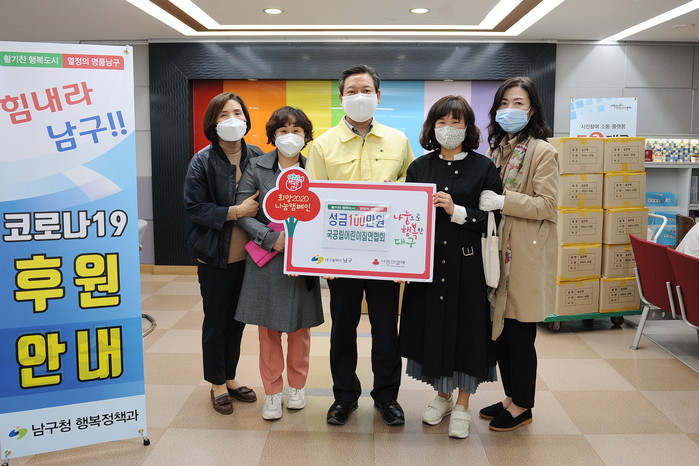 [로컬세계 박세환 기자]대구 남구는 지난 30일, 국공립어린이집연합회(회장 김미성)에서 코로나19로 인한 지역사회의 위기를 함께 극복하고자 성금 100만원을 전달했다고 31일 밝혔다.