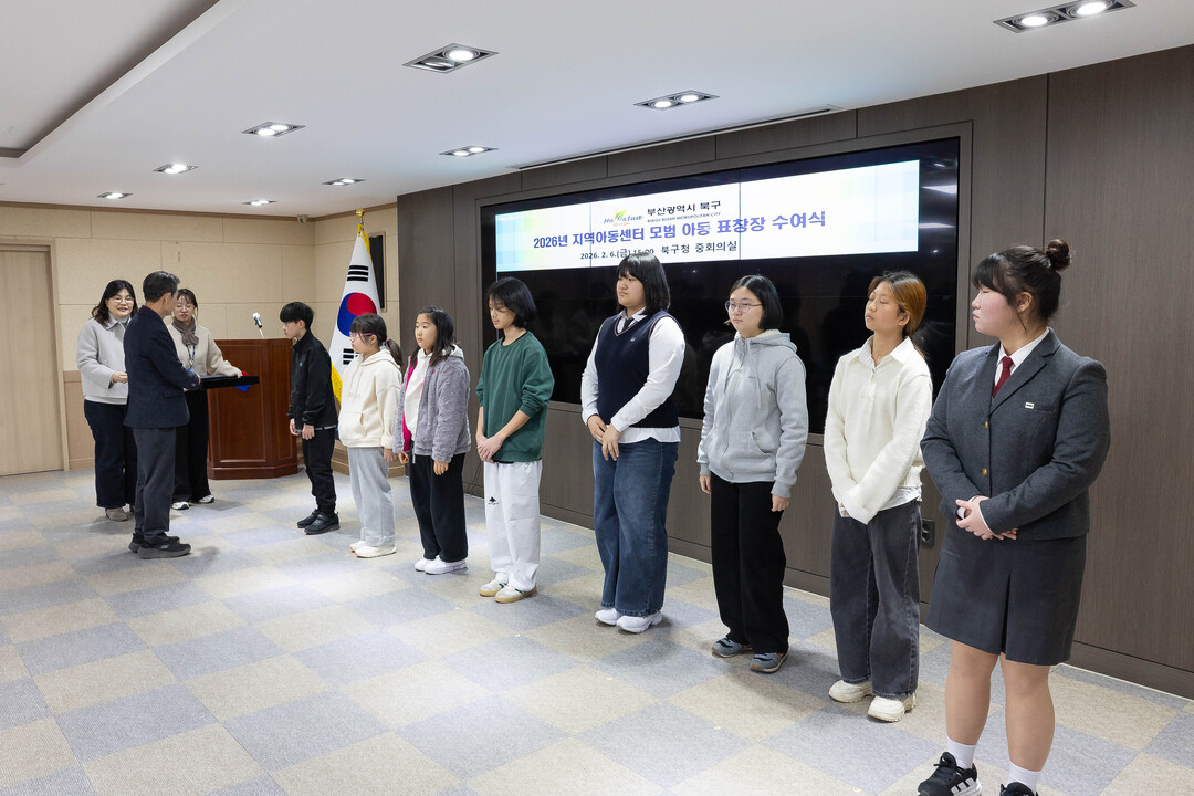 부산 북구는 2026년 지역아동센터 모범아동 표창장 수여식을 열고 타의 모범이 되는 아동 16명에게 표창장을 수여했다고 11일 밝혔다.