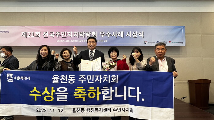 [로컬세계=김병민 기자]경기 수원시 율천동과 광교1동이 ‘제21회 전국주민자치박람회’에서 수상했다. 시상식은 지난 12일 부산 벡스코 제1전시장에서 열렸다.