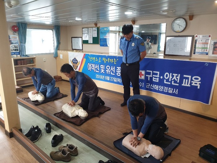 ‘찾아가는 구급·안전 교육’은 군산항을 기점으로 운항하는 국제여객선 2척과 연안 여객선 3척 그리고 유선 5척의 선원 130여 명을 대상으로 실시한다.