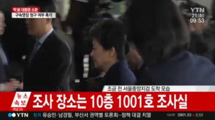 ▲박근혜 전 대통령이 검찰에 출석하고 있다. 사진은 YTN 화면 캡쳐. |