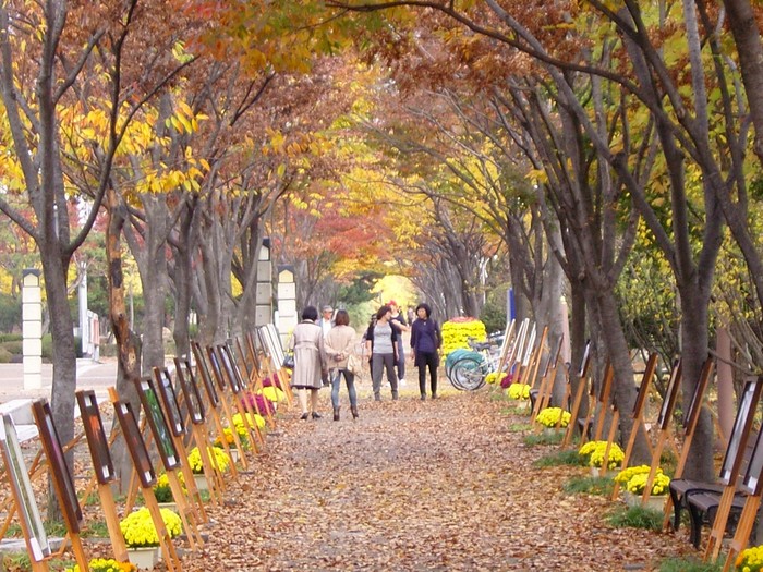 또한 낙엽거리에는 시화와 사진, 그리고 그윽한 향기를 내뿜고 있는 국화꽃이 전시되어 망중한을 보내고픈 사람들을 기다리고 있다.