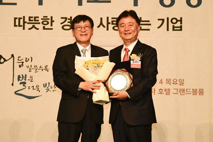 ▲2024 대한민국 최고의 경영대상을 받은 최문순 군수(오른쪽) |