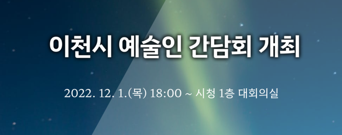 한편, 예술인 간담회 신청은 이천시청 홈페이지 공지사항, 문예관광과 예술팀전화 접수, 또는 아래 링크에 접속해 신청하면 된다.