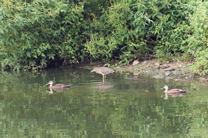 | ▲수원수목원 조성 현장에서 관찰된 해오라기와 흰뺨검둥오리. |
