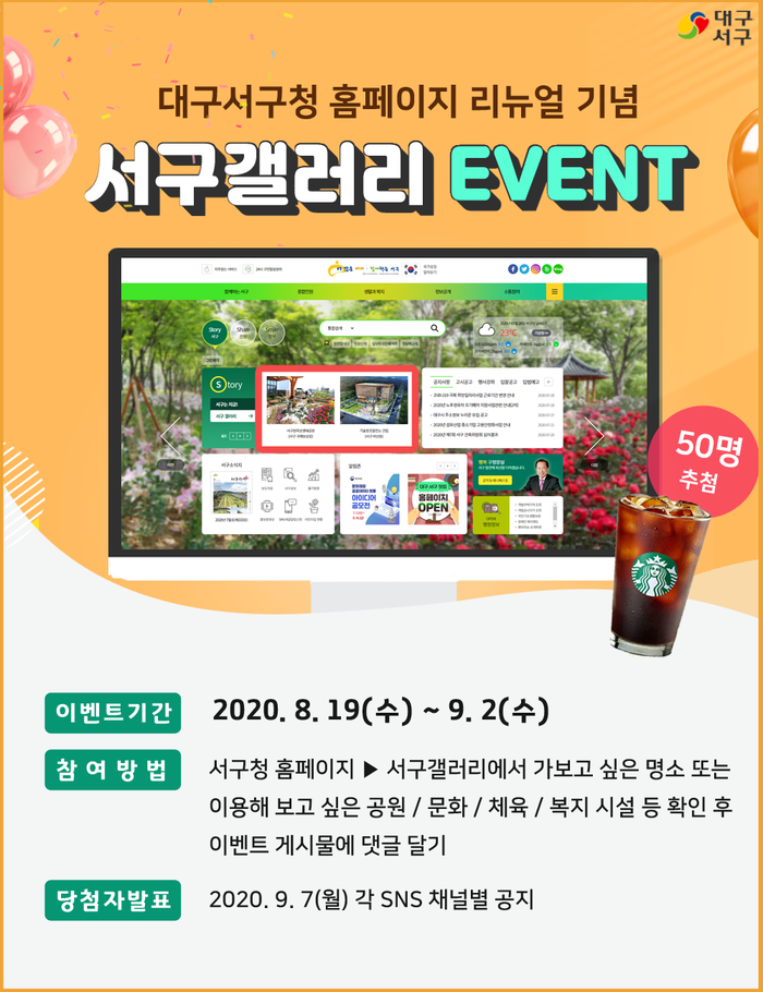 이번에 신설된 서구갤러리와 연계한 이벤트로 구민과의 소통강화와 홈페이지 홍보효과를 높일 것으로 기대된다.
