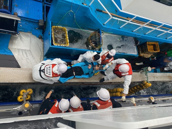 해경 경비정은 사고접수 10분만인 10시 50분께 현장에 도착해 응급환자를 옮겨 태우고 군산해경 전용부두로 긴급 이송해 119에 인계했다.