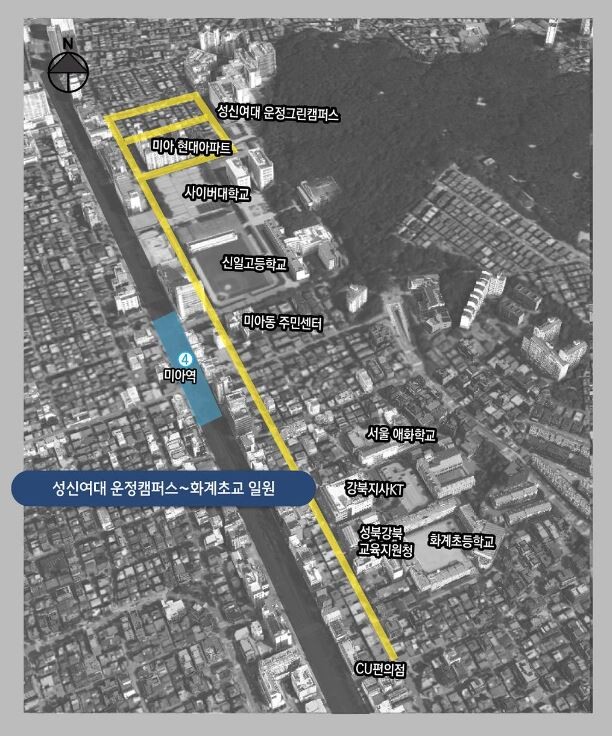 ▲ 강북구 미아동 ‘찾고 싶은 으뜸거리’ 사업 구간인 성신여대 운정캠퍼스~화계초교 일대.(강북구 제공) |